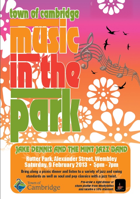 Mint Jazz Band has been very successful over the last half year. Our double bassist Malcolm Mah married in spring and our drummer Chris Marquand married this autumn! I was honoured to be chosen by Mah to perform “In Your Eyes,” an original song he penned for his bride, at his wedding reception, and to sing the first dance song – a swing version of Nirvana’s “Smells Like Teen Spirit” – for Marquand’s! In addition, we have been over-the-moon every time we are chosen to entertain at clients’ weddings (thank you brides and grooms and Perth Professional Entertainment Services), charity events (SolarisCare’s Red Sky Ride Appreciation Night, Mondo Community Warriors’ Lifeline Fundraising Brunch, Playlovers Theatre Hills Bushfire Fundraiser), council events (Town of Cambridge, City of Perth, Town of Victoria Park), and stylish restaurants (the Naked and Wild Fig Cafes).